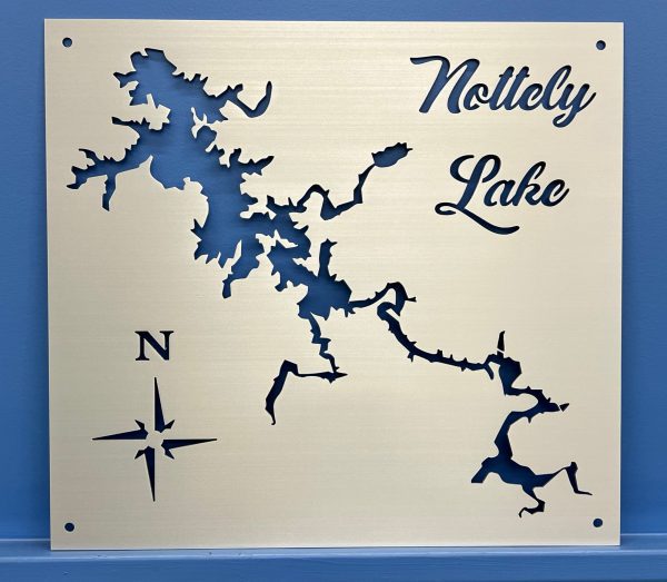 Add a distinctive touch to your lake house or cabin with a custom aluminum Lake Nottely map. Crafted from high-quality brushed aluminum, our lake maps offer exceptional durability and elegance. Each map measures 23″x24″ and is designed to complement both indoor and outdoor spaces.