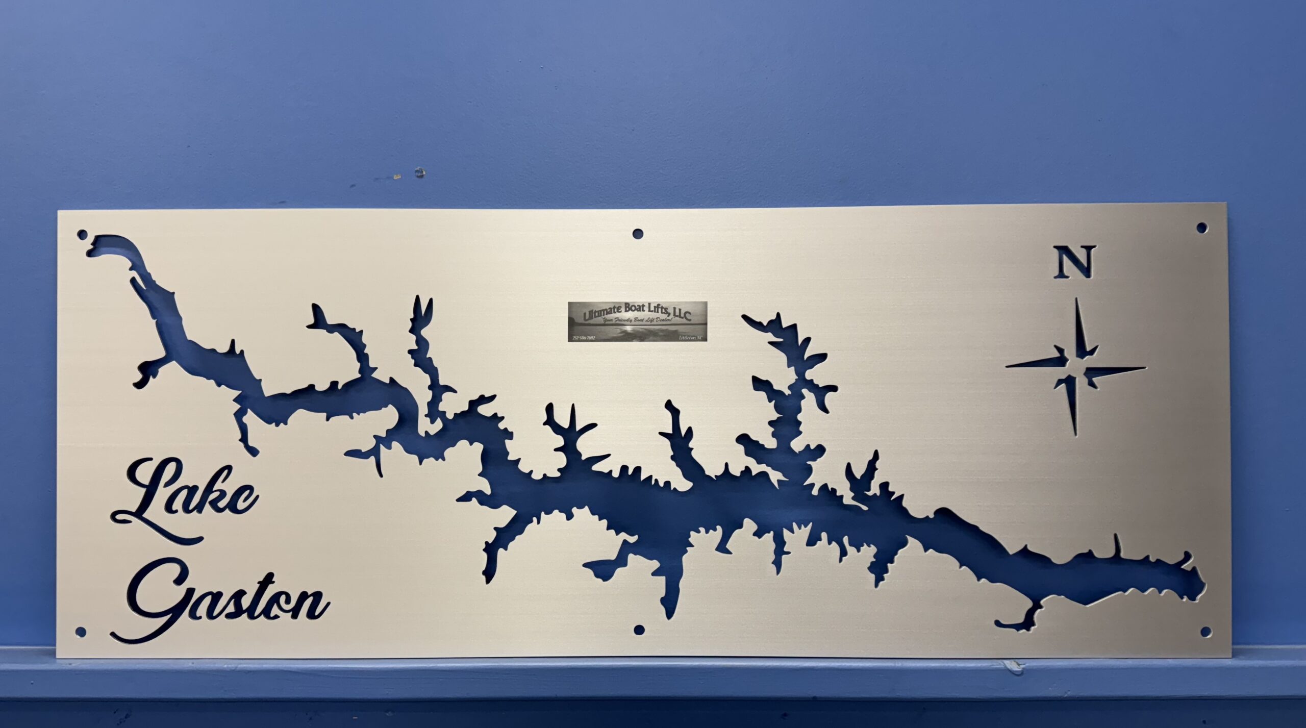 Show your love for the 20,300-acre playground that straddles North Carolina and Virginia with an 18″ × 46″ Lake Gaston Map, cut from premium brushed aluminum. Every contour of the shoreline, from Eaton Ferry Bridge to Pea Hill Creek, is meticulously CNC-routed, giving you a piece that’s as accurate as it is striking—ready for display in your family room, dock house, or office lobby.