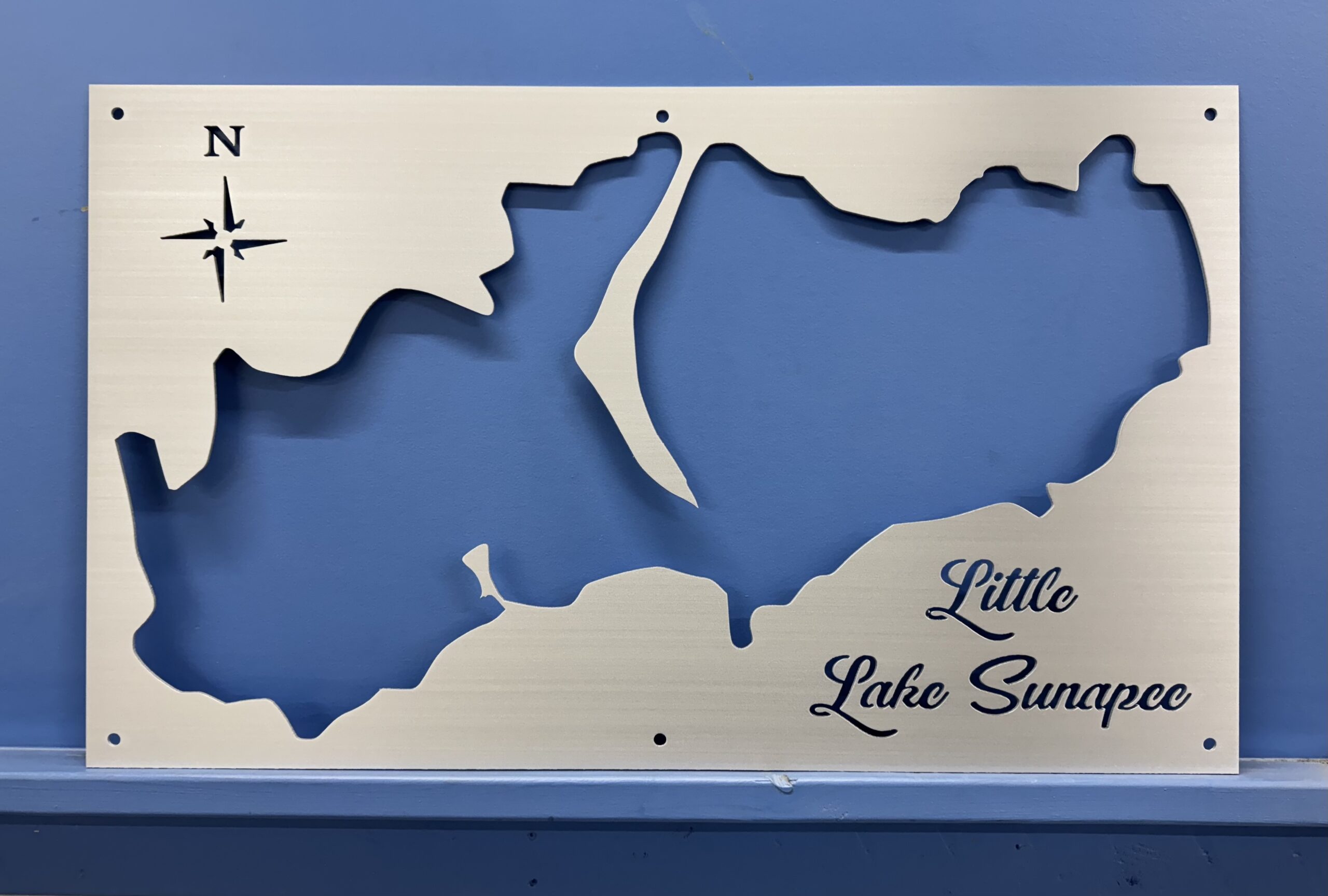 We include floating standoff hardware that spaces your Little Sunapee Lake map about ¾″ off the wall. This creates a clean, gallery-style look and a subtle shadow around the piece.